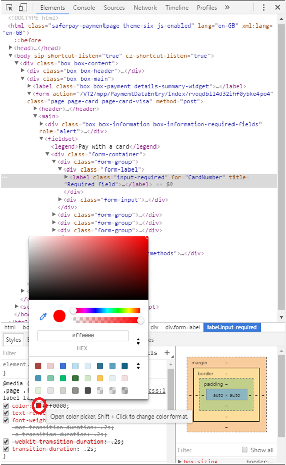 The change is immediately displayed in the browser. Then, the code simply needs to be transferred to the CSS file:
