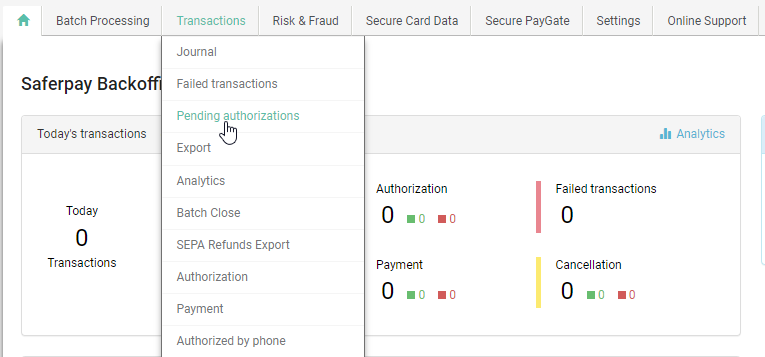 **`PENDING`** transactions are handled within [a special section of the Saferpay Backoffice](https://docs.saferpay.com/home/interfaces/backoffice/transactions/pending-authorizations), to give you an overview of payments, that are still in progress.